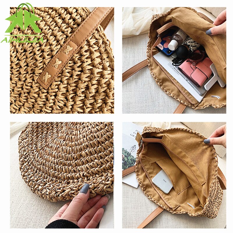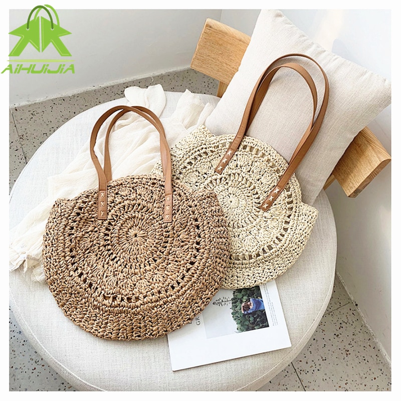 Rattan Summer Round Straw Shoulder Bag