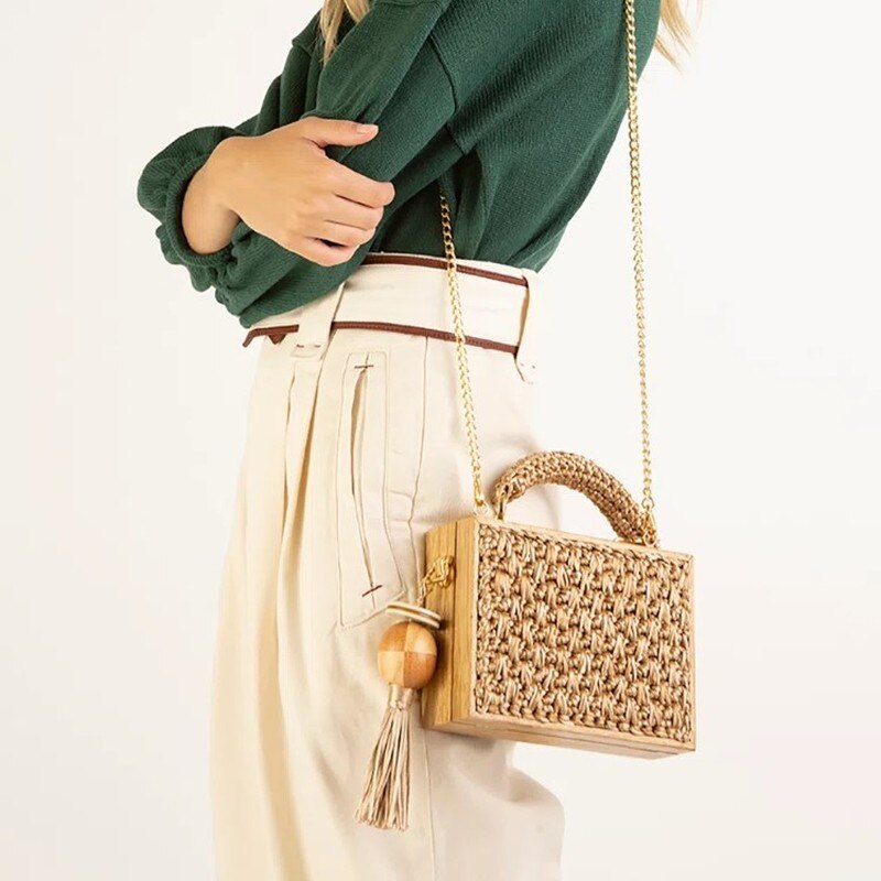 Tassel Straw Bamboo Rattan Shoulder Bag